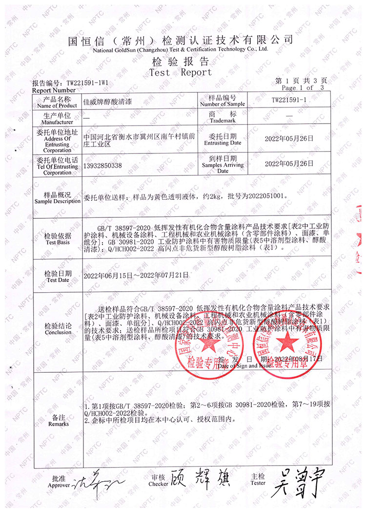 佳威醇酸清漆檢驗報告